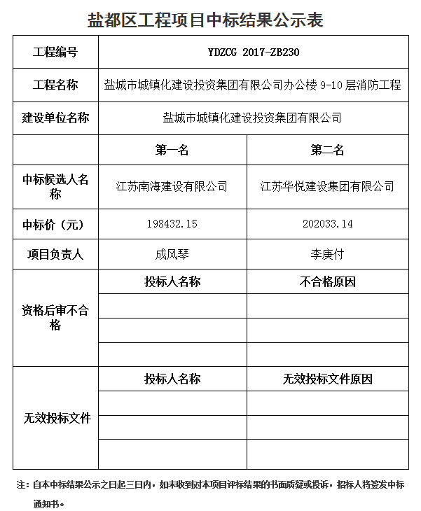盐城市张庄全民双创园标准化工业厂房(一期)工程中标结果公示